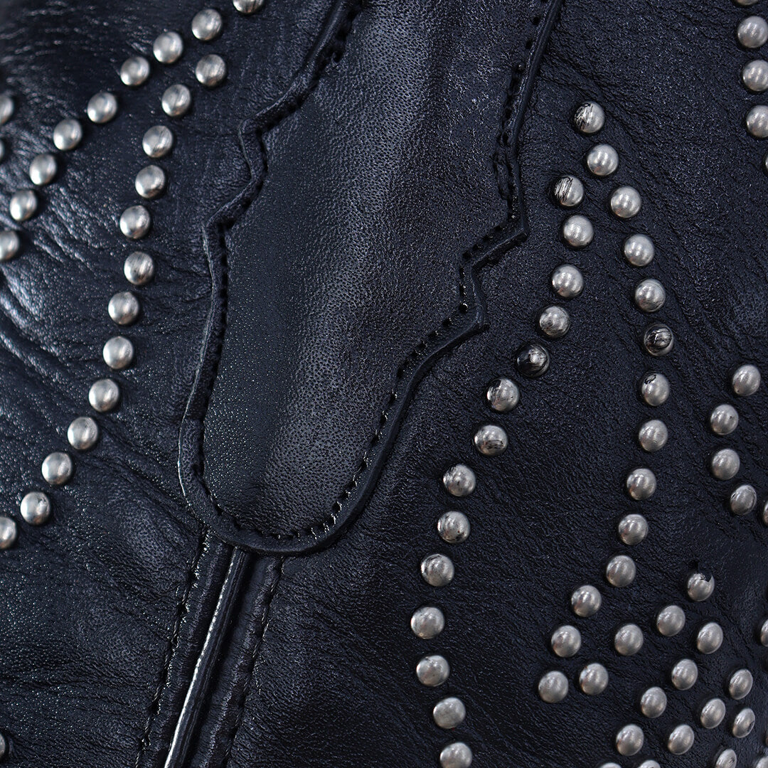 Dale un toque único a tu outfit con nuestra bota Aurora en color Negro, confeccionada en piel de res de la más alta calidad. Su diseño combina comodidad y estilo con su suela de cuero y tacón antiderrapante.