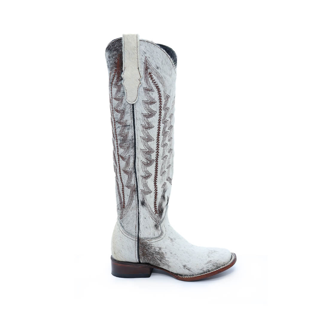 Dale un toque único a tu outfit con nuestra bota Lola confeccionada en pelo de vaca de la más alta calidad. Su diseño combina elegancia y estilo vaquero, con un tubo en piel de res y suela de cuero con tacón antiderrapante.