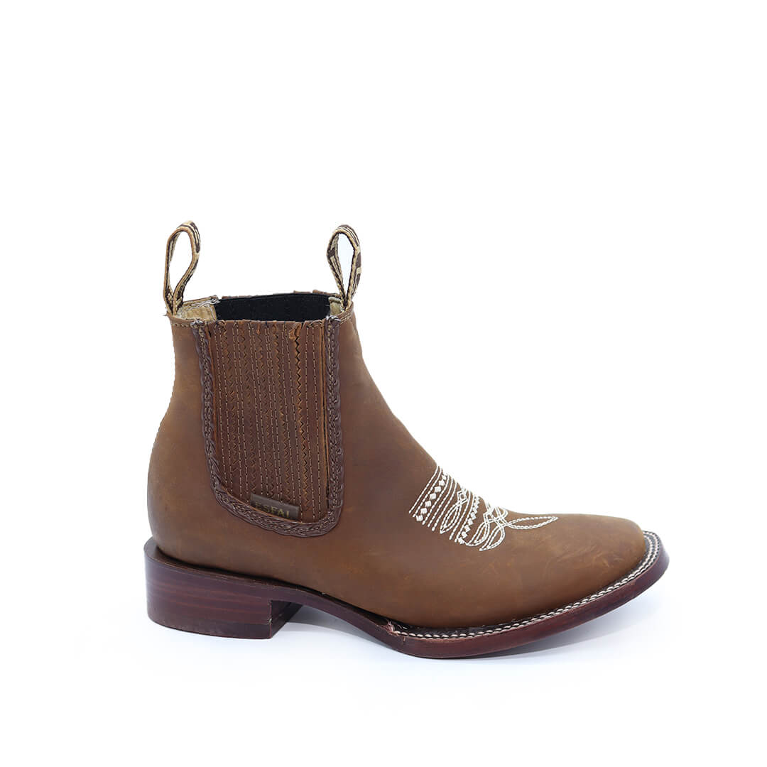 Diseñado con su distintiva horma bulldog, cuenta con elástico en laterales para mayor facilidad al ponerse. Su interior está forrado en piel de res, con plantilla del mismo material y ringle en la parte superior.