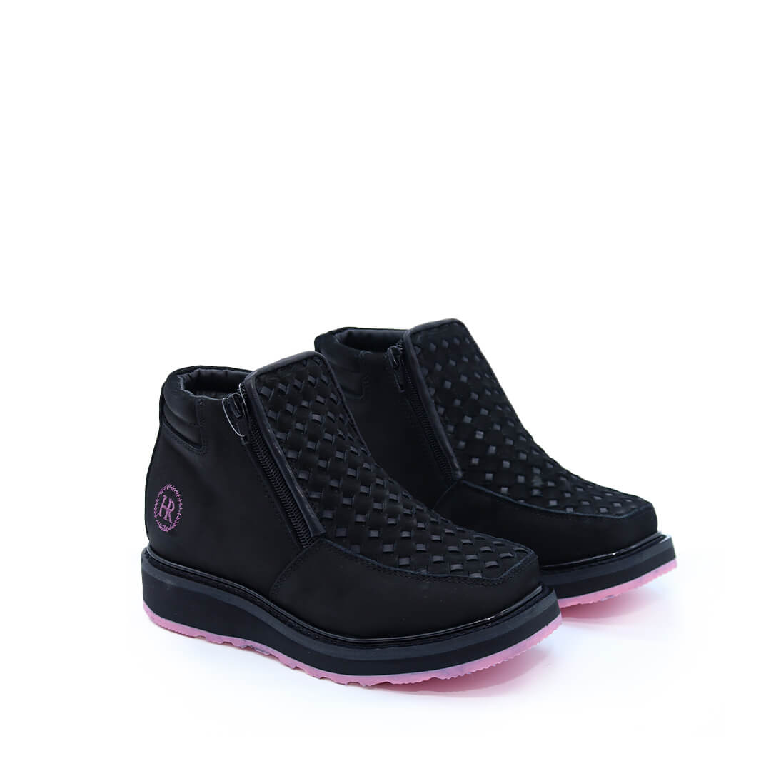 Dale un toque único a tu outfit con nuestro Botín HR en piel de res en petatillo. Su diseño artesanal tejido a mano combina comodidad y estilo, gracias a su suela doble densidad de poliuretano.